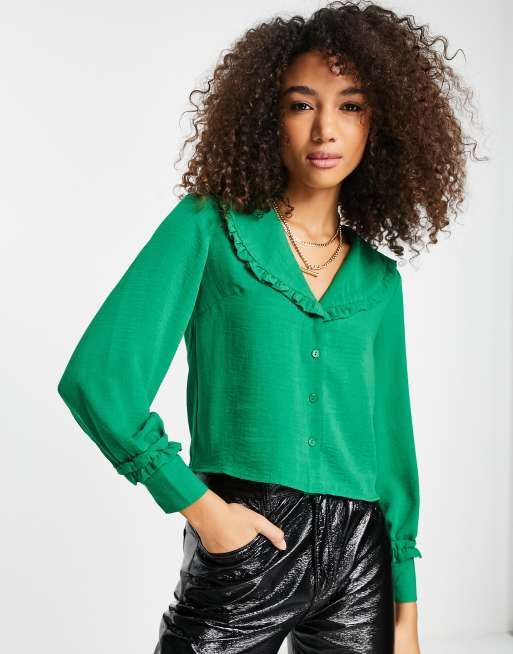 Topshop - Camicia verde testurizzata con colletto con volant