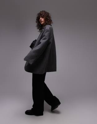 Topshop - Cappotto stile blazer effetto lana spazzolata grigio
