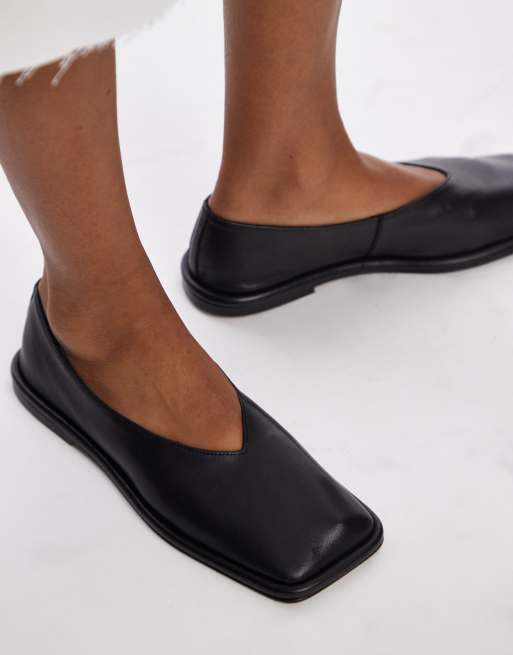 Topshop - Charlotte - Scarpe basse sfoderate in pelle nera con punta squadrata