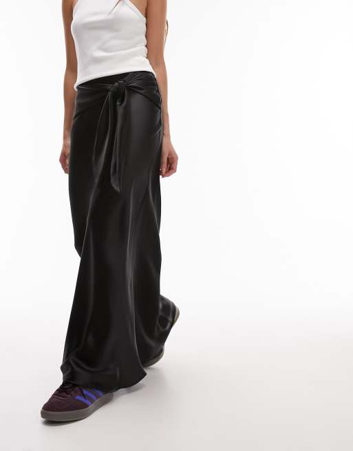Topshop - Circle - Gonna nera in raso allacciata sul davanti