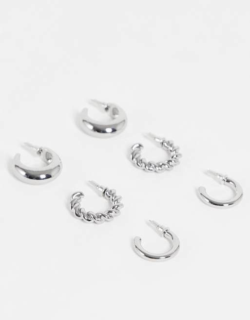 Topshop - Confezione da 3 paia di orecchini argento a cerchio
