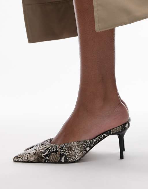Topshop - Dill - Scarpe con tacco medio arricciate con motivo pitonato