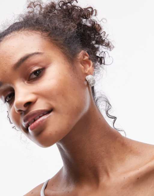 Topshop - Elton - Orecchini a bottone argentati con strass