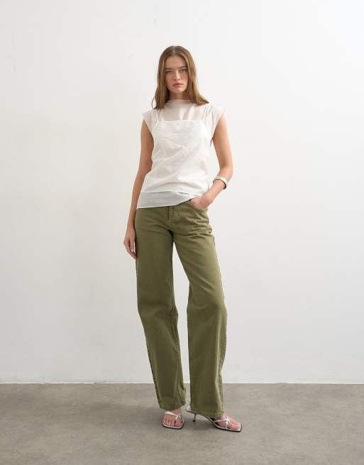 Topshop - Ember - Jeans dritti a vita bassa kaki