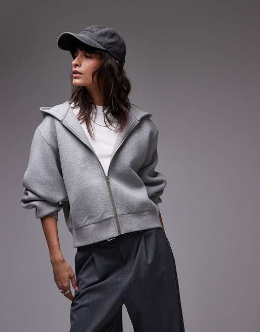Topshop - Felpa con cappuccio premium in tessuto scuba grigio mélange