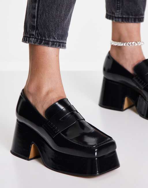 Topshop - Fox - Mocassini con tacco e punta quadrata neri