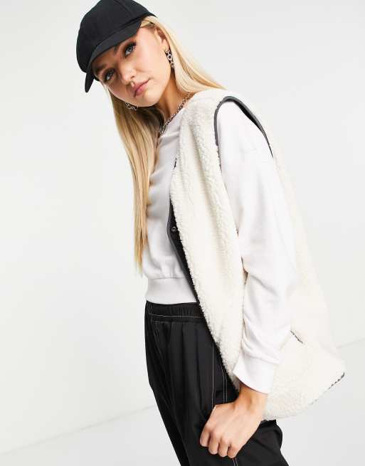 Topshop - Gilet double-face blu navy in cotone con tasche applicate