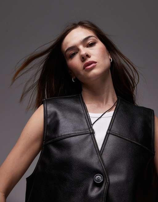 Topshop - Gilet in pelle sintetica nera
