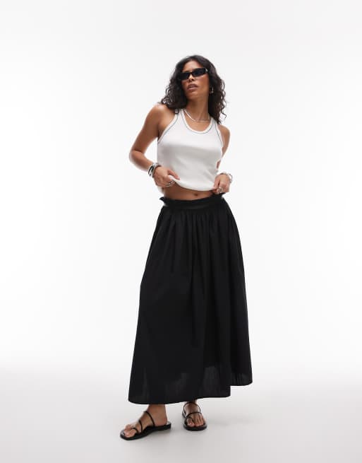 Topshop - Gonna a ruota in cotone stropicciato nero slavato