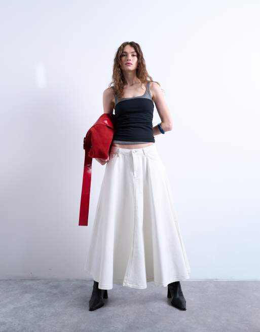 Topshop - Gonna lunga a ruota in denim écru