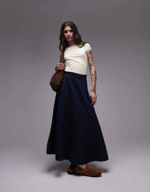 Topshop - Gonna lunga a ruota in denim indaco grezzo