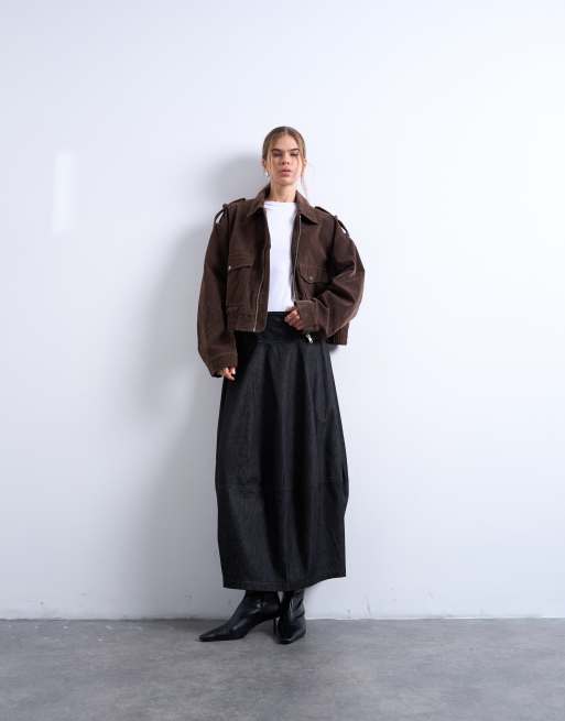 Topshop - Gonna lunga bombata in denim nera con cuciture