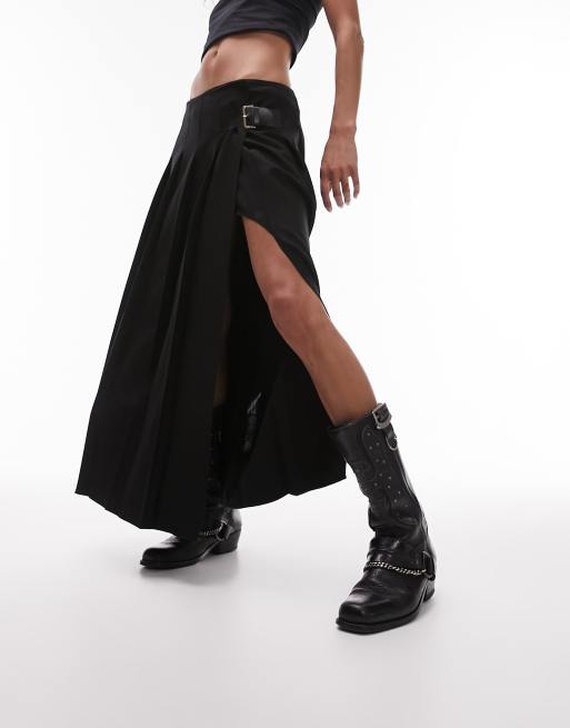 Topshop - Gonna midi a pieghe nera