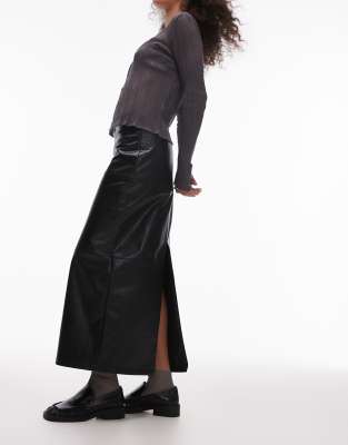 Topshop - Gonna midi in pelle sintetica nera liscia a pannelli
