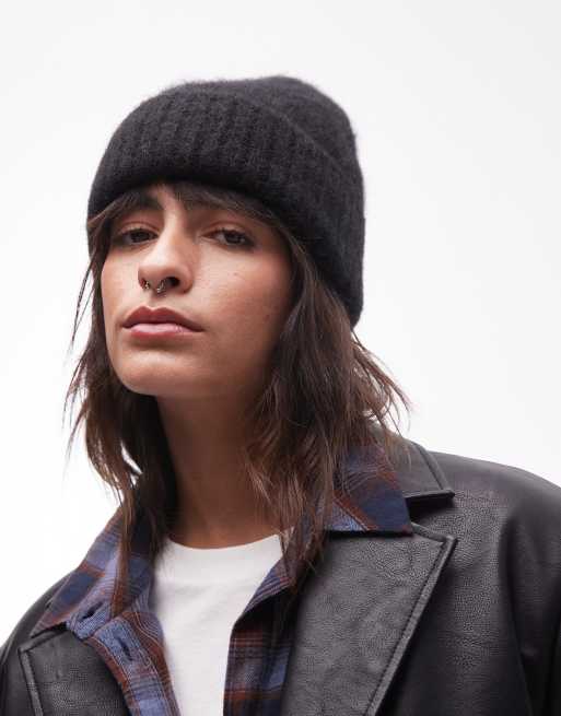Topshop - Harvey - Berretto premium nero in misto lana d'alpaca