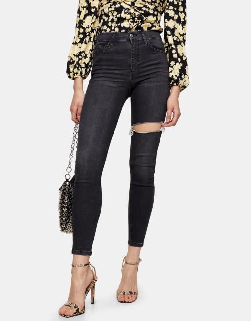 Topshop - Jamie - Jeans nero slavato con strappo sulla coscia
