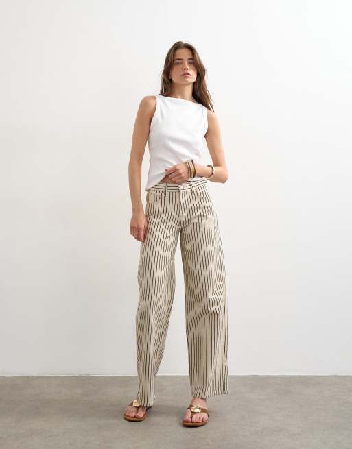 Topshop - Jeans comodi a vita bassa écru e nero a righe