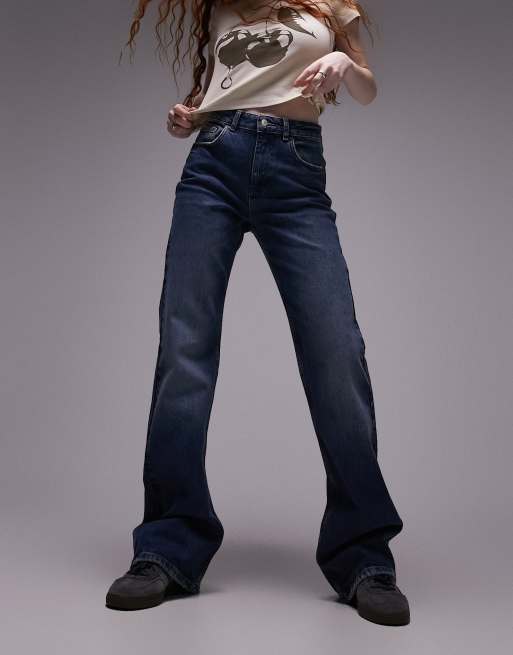 Topshop - Jeans comodi a zampa a vita medio alta blu miliardario