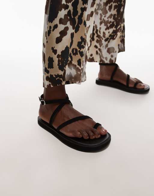 Topshop - Kayce - Sandali bassi in vera pelle scamosciata neri con fascette sottili