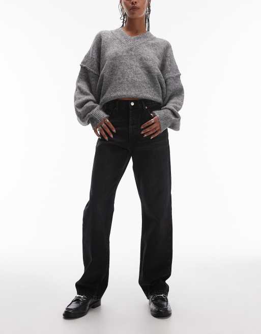 Topshop - Kort - Jeans dritti nero slavato a vita alta