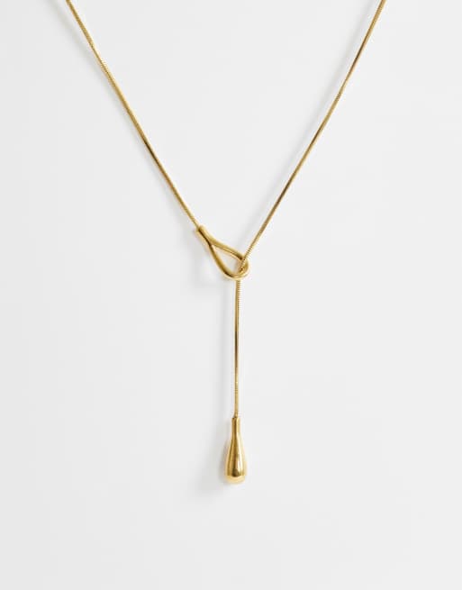 Topshop - Leah - Collana lariat inossidabile dorata con perlina
