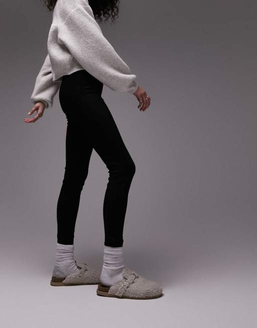 Topshop - Leggings neri pesanti con ampia fascia in vita
