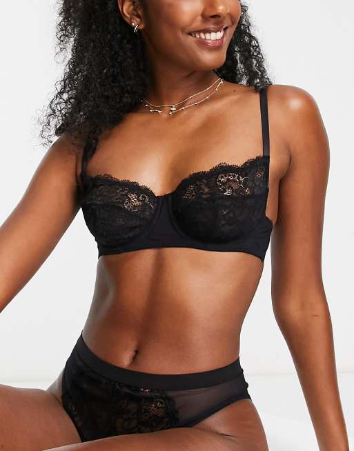 Topshop - Luna - Reggiseno in pizzo nero con ferretto