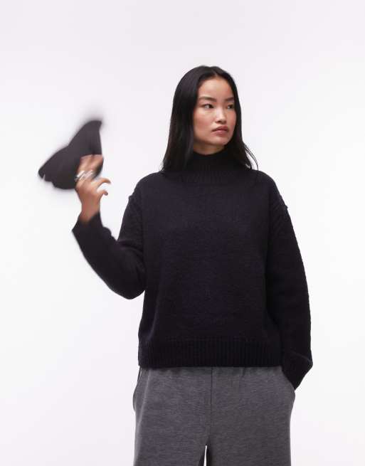 Topshop - Maglione comodo blu navy con collo a imbuto e cuciture