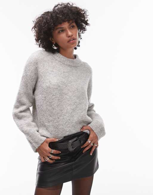 Topshop - Maglione girocollo grigio chiaro bouclé