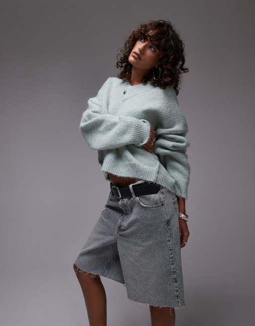 Topshop - Maglione lavorato soffice verde con scollo a V alto