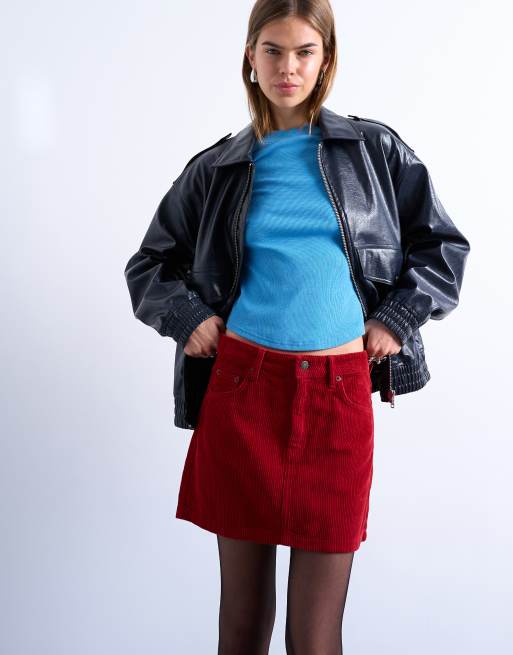 Topshop - Microgonna rossa in velluto a coste