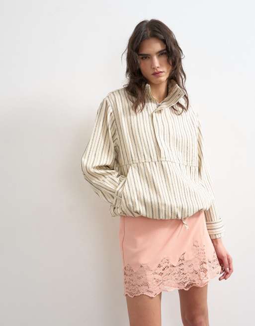 Topshop - Minigonna a portafoglio rosa con orlo in pizzo