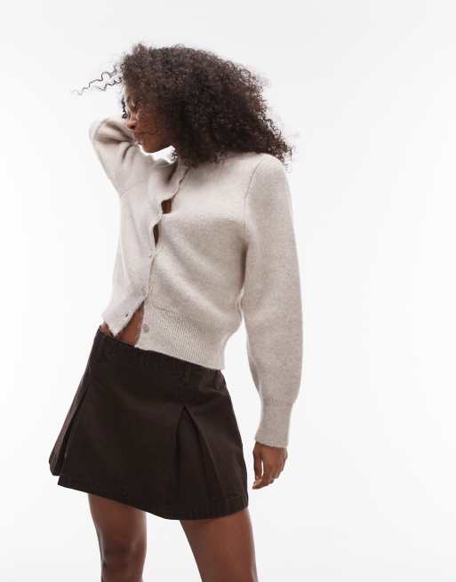 Topshop - Minigonna in denim marrone con piega a cannoncino