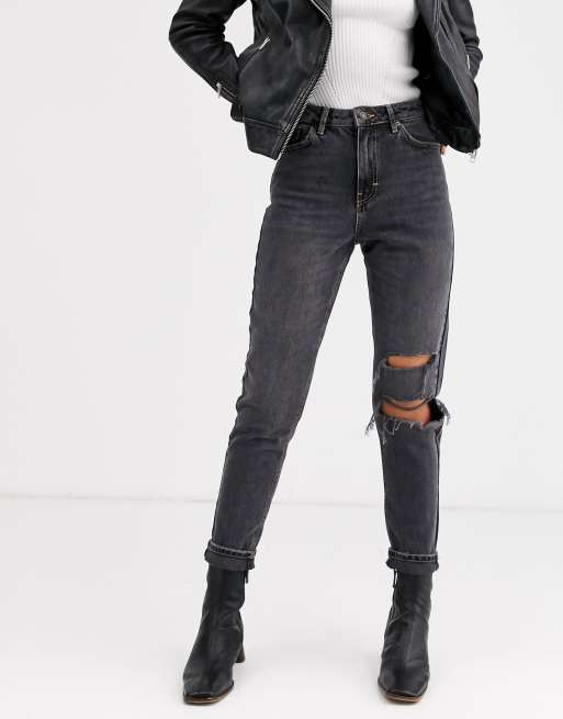 Topshop - Mom jeans con strappi nero slavato