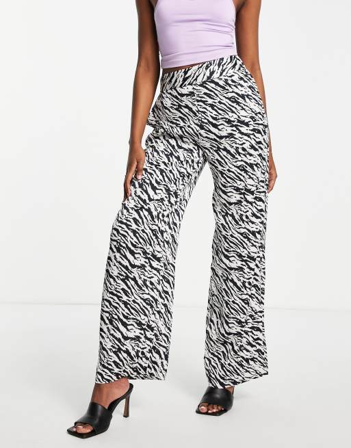 Topshop - Pantaloni a fondo ampio in raso con stampa animalier in coordinato