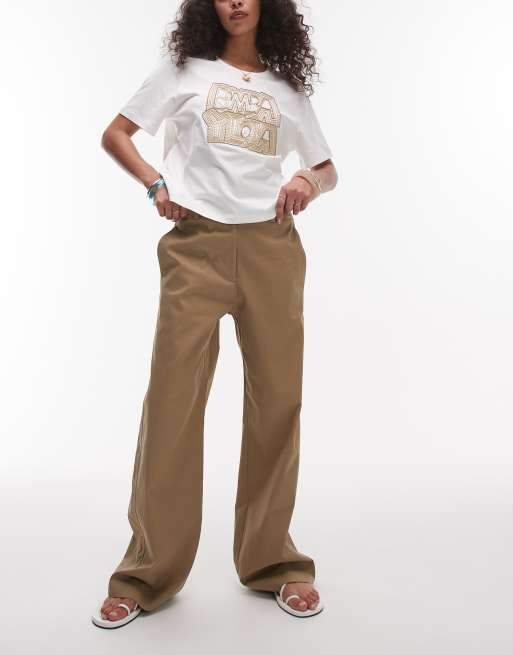 Topshop - Pantaloni dritti sartoriali casual a vita bassa beige