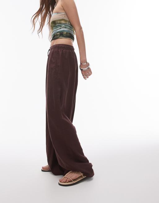 Topshop - Pantaloni in misto lino marroni a palloncino