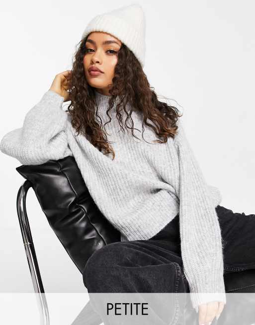 Topshop Petite - Maglione con collo a imbuto in piqué grigio con cuciture
