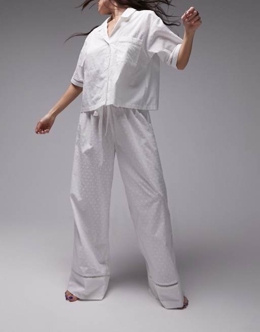 Topshop - Pigiama con camicia e pantaloni in cotone bianco testurizzato