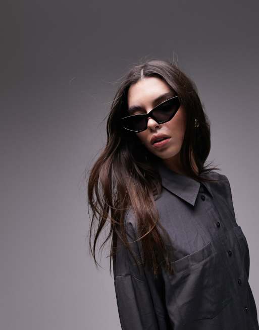 Topshop - Poppy - Occhiali da sole cat-eye squadrati neri