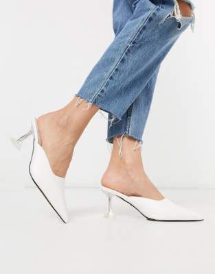 Topshop - Sabot in pelle bianche con tacco trasparente