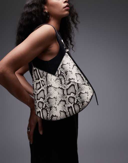 Topshop - Sascha - Borsa da spalla pitonata con design a V