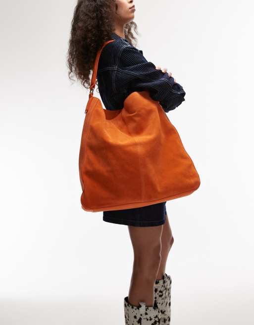 Topshop - Sienna - Borsa da spalla in vera pelle arancione