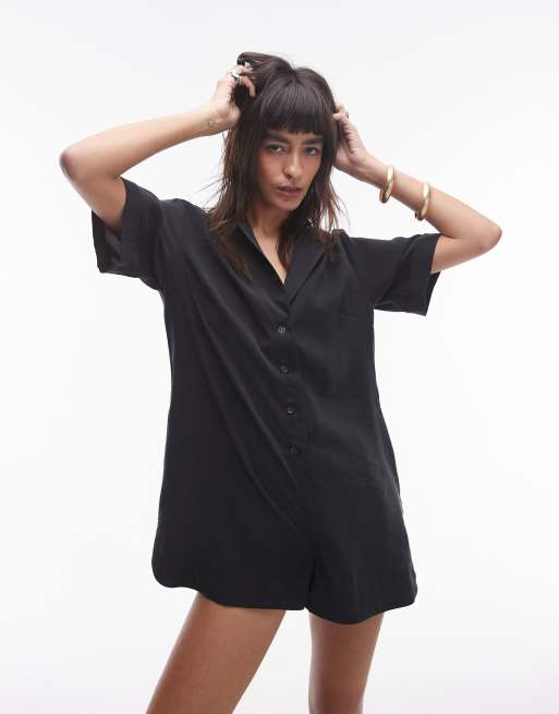Topshop - Souvenir - Tuta corta in cupro nera con chiusura con bottoni