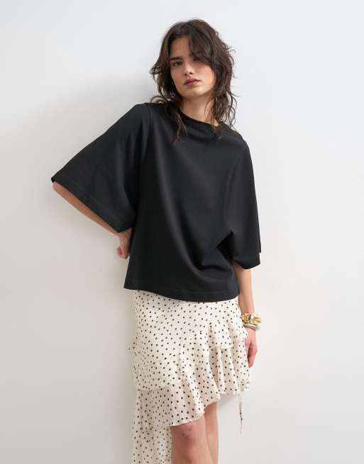 Topshop - T-shirt nera con maniche ad ali di pipistrello