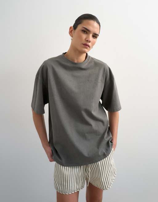 Topshop - T-shirt nero slavato con stampa grafica Mercer e spalle scivolate