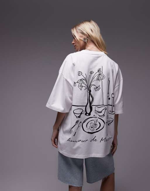 Topshop - T-shirt oversize bianca con stampa “Amour de Maison”