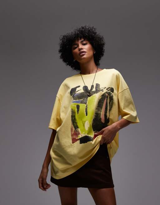 Topshop - T-shirt oversize gialla in jersey con grafica "Cuba"