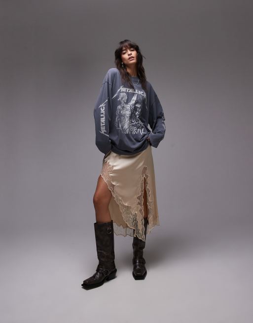 Topshop - T-shirt stile skater a maniche lunghe grigia con grafica "Metallica" su licenza