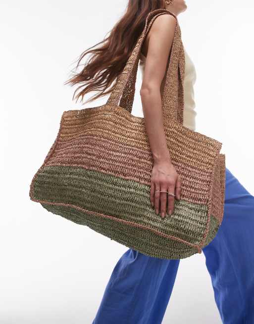 Topshop - Tatum - Maxi borsa in paglia kaki a righe